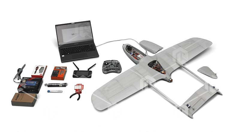 Комплекс включает в себя кит-набор для сборки летательного аппарата среднего класса с размахом крыла более 1200мм и грузоподъёмностью до 5 кг. и набор необходимых инструментов и запчастей, позволяющих произвести сборку наладку и испытания данного ЛА. Собранный летательный аппарат позволяет выполнять полноценные полеты или учебные лабораторные работы. Данный ЛА создается на базе модульного решения в одной из 6 конфигураций и может быть пересобран любой момент