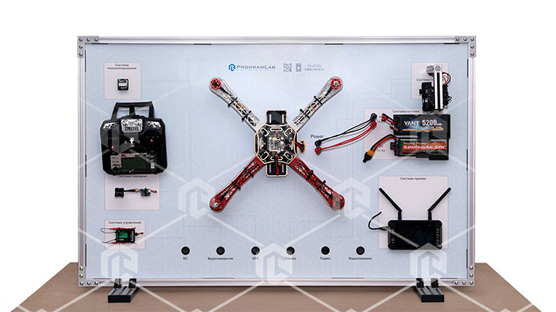 Данный комплекс представляет из себя стенд-планшет на котором жестко закреплен действующий образец изучаемого прототипа ЛА, аналогичного решениям на базе комплекта DJI.