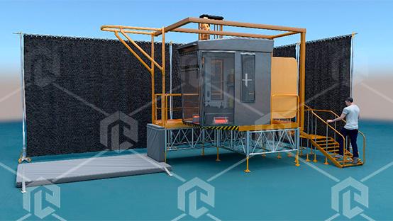 Данный тренажерный комплекс предназначен для осуществления имитационных тренировочных занятий по выполнению стандартных процедур эвакуации с мостового крана в условиях возникновения аварийной ситуации. С помощью системы иммерсионной виртуальной реальности, а также специализированного тренировочного комплекса-оснастки возможно воссоздание реалистичной обстановки, полностью имитирующей аварийную ситуацию на производстве.
