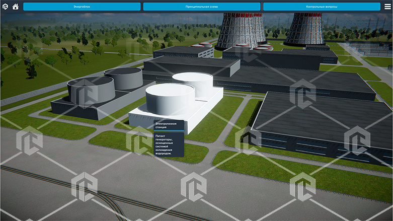 Позволяет наглядно отображать принцип работы деталей и узлов оборудования, изучать основные элементы по интерактивной схеме. Позволяет изучать особенности конструкции и принцип работы оборудования энергоблока АЭС. Позволяет проводить исследование оборудования с оценкой полученных знаний.