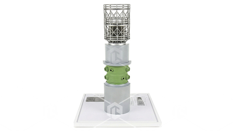 Макет наглядный в разрезе предназначен для изучения конструкции и внутреннего устройства оборудования и выполнен на подмакетнике из МДФ в настольном исполнении с применением аддитивных технологий и последующим лакокрасочном покрытии, содержит спецификацию элементов и светодинамику для изучения технологического процесса.