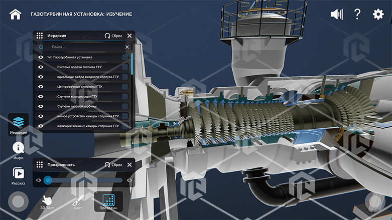 Виртуальный учебный комплекс "Устройство газотурбинной установки" – это специальное программное обеспечение, в котором реализованы трехмерные модели, являющиеся аналогами реального оборудования.
