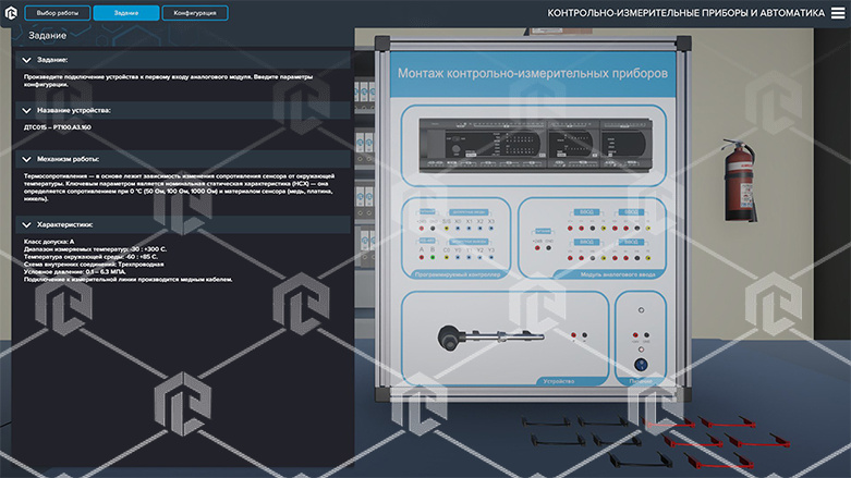 В рамках данного учебного комплекса решаются следующие задачи: Изучение классификации, конструкции, принципа действия Контрольно-измерительных приборов и автоматики. Виртуальный комплекс позволяет ознакомиться с виртуальными моделями реальных измерительных приборов, датчиков и систем автоматики, используемых в современном производстве и технологических процессах.