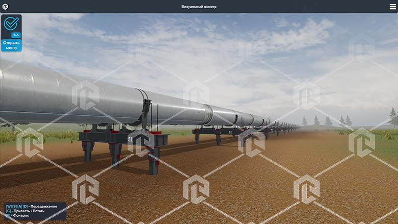 Специализированное программное обеспечение "Обход и обнаружение дефектов участка нефтегазопровода" позволяет проводить исследование трехмерных моделей и проводить виртуальные работы с нефтегазовым оборудованием.