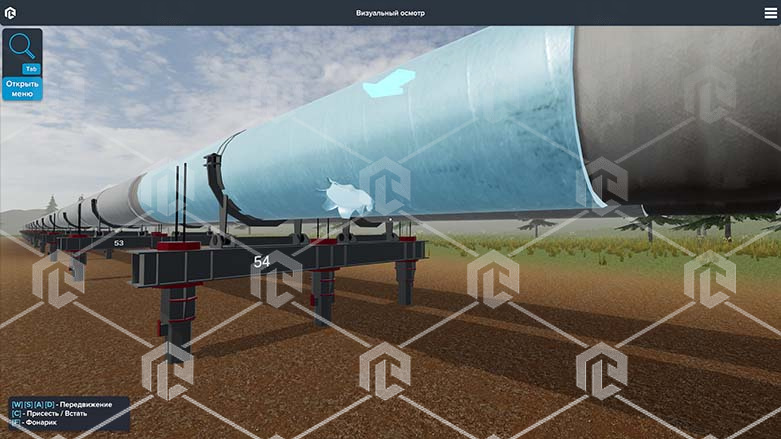 Учебный комплекс позволяет проводить обход и визуальный поиск на предмет выявления неисправностей нефтегазопровода: