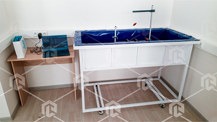 Позволяет провести лабораторных работ по определению остойчивости судна. С помощью малогабаритного бассейна и масштабных моделей и лабораторной установки проводится моделирование и визуализация различных параметров и условий определяющих остойчивость судна и выполняются опыты по их измерению.
