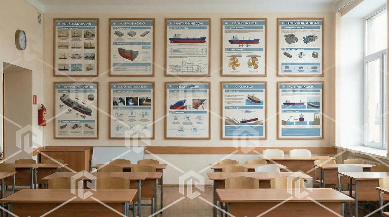 Комплект из 10 информационных плакатов предназначен для наглядного изучения технологий судостроения. Плакаты предназначены для размещения на стенах рабочих аудиторий. Плакаты подходят для оснащения учебных классов, мастерских. Схемы, таблицы и инфографика помогают систематизировать знания и запоминать ключевую информацию. Плакаты и их тематика могут быть разработаны под нужды заказчика.