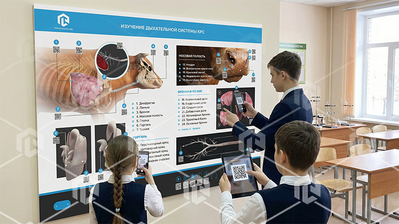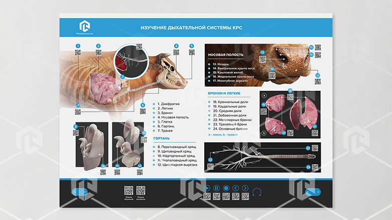 Светодинамический стенд-планшет предназначен для получения знаний об устройстве органов дыхания различных сельскохозяйственных животных.