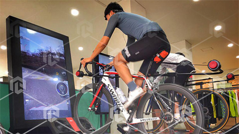 - Интерактивная стойка с поворотным МФИ – для визуализации процесса управления велосипедом в экранном режиме со встроенным вычислительным блоком