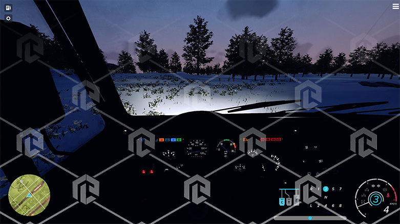 Программное обеспечение автотренажера основано на 3D симуляции математической модели движения автомобиля с учетом физических параметров и динамики транспортного средства. Автотренажер разработан в соответствии с примерной программой подготовки водителей транспортных средств категории «С», отвечает требованиям пожарной и электробезопасности, а также санитарных правил и нормативов. Автотренажер структурно состоит из двух частей: аппаратной и программной части.