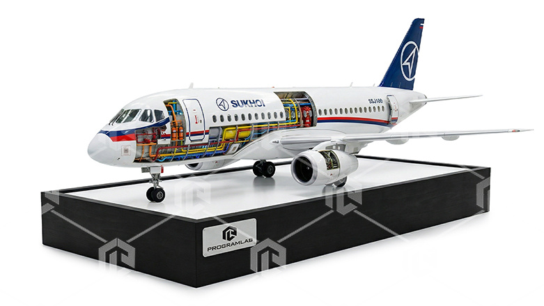 Светодинамический макет предназначен для изучения систем самолета (топливная, гидравлика, противопожарная), имеет вырез фюзеляжа, голосовое сопровождения. Выполнен в настольном варианте из МДФ, акрила. Макет выполнен с применением аддитивных технологий.