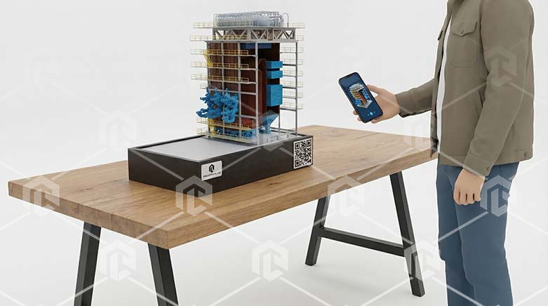 Жылу электр станциясының газ-май қазандығы секциясының үлгісі жұмыс үстелі нұсқасында импровизацияланған оңай өңделетін материалдардан жасалған, ол ЖЭО газ-май қазандығының құрылғысы мен элементтерін көрнекі зерттеуге мүмкіндік береді, жабдықтың түсіндірмесін қамтиды.