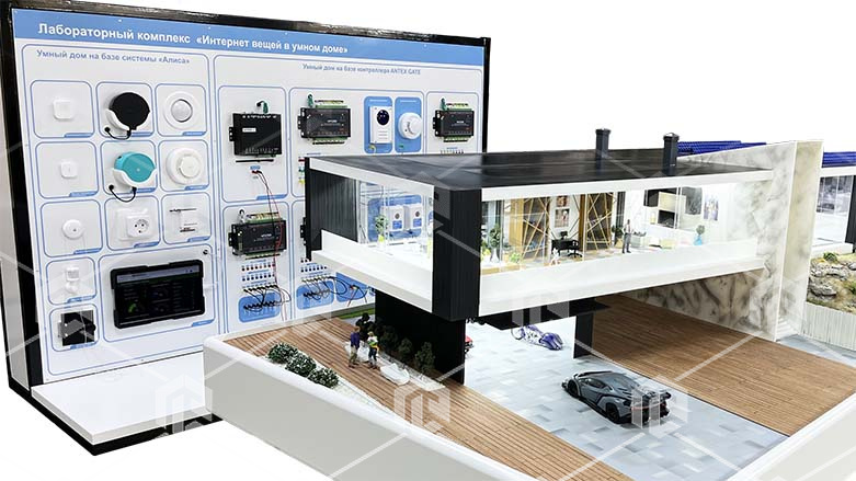 «Ақылды үйдегі заттардың интернеті» зертханалық кешені – сенсорлары, құрылғылары және контроллері бар үй үлгісі. «Ақылды жылыжай» жүйесін енгізу мысалында IoT құрылғылары мен жүйелерінің (Internet of things) жұмыс істеу принциптерін үйретуге арналған.