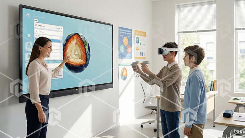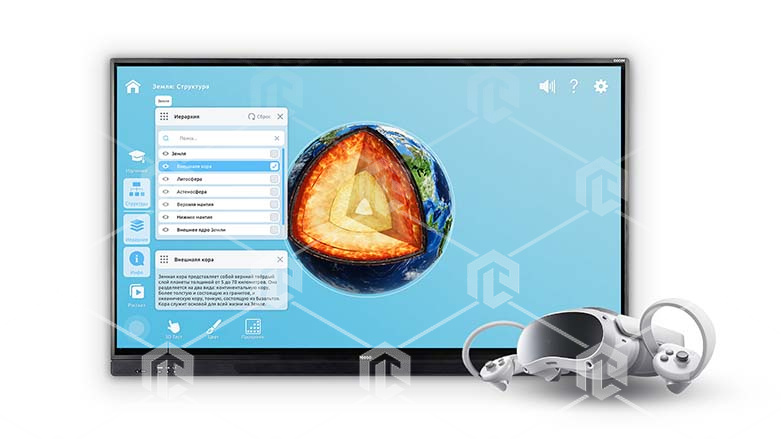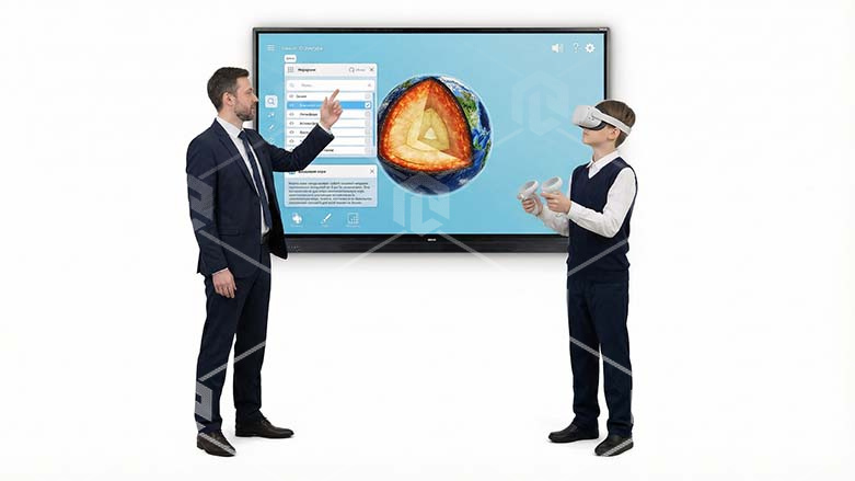 Интерактивная панель «Познание: Школьная программа» представляет собой сенсорную панель с программным обеспечением, которое позволяет с помощью трехмерной графики и анимации продемонстрировать принципы работы и структуру объектов, процессов и явлений, проходящих в различных областях. Программное обеспечение содержит набор виртуальных сцен, которые имеют возможность интерактивного изучения 3D объектов в различных режимах. Наглядное пособие ориентировано на школьную программу согласно ФГОС. Учебные виртуальные сцены направлены на изучение основных школьных направлении, таких как физика, химия, биология, естествознание, история, технологии.