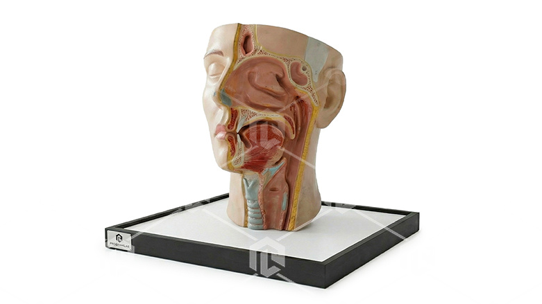 Модель в разрезе предназначена для изучения анатомического строения и выполнена на подмакетнике из МДФ в настольном исполнении с применением аддитивных технологий и последующего лакокрасочного покрытия, содержит спецификацию элементов.