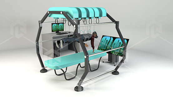 аппараттық кешен пациентті тік күйде бекітуге арналған (вертикализатор) немесе пациентті көлденең суспензияға арналған арнайы суспензия кешені , одан кейін науқастардың қозғалыс мүшелері.