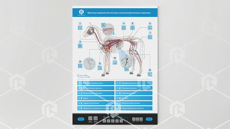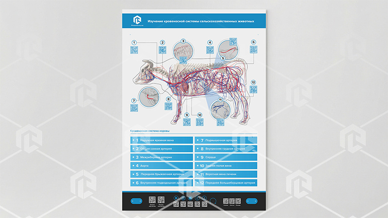 Жарық-динамикалық стендтік планшет әртүрлі ауылшаруашылық жануарларының қан айналымы жүйесінің құрылымы туралы білім алуға арналған.